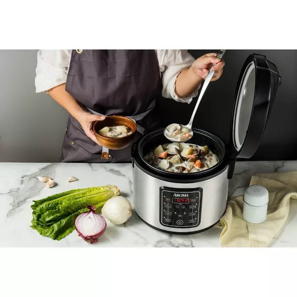 Product detailsEasily prepares cups of any variety of cooked riceSteams meat and vegetables while rice cooks belowEasy-to-use, programmable digital controls with automatic keep-warm and white rice, brown rice, steam, and slow-cook functionsStainless steel rice cooker and steamer is ideal for roasts, soups, jambalaya, and much moreAroma programmable rice cooker has a 15-hour delay timer for flexible meal planningAssembled Product Dimensions (L x W x H)