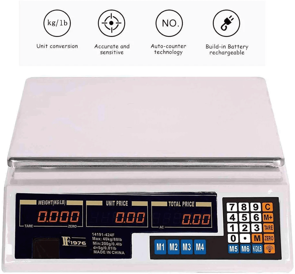 88 Lbs Electronic Price Computing Scale High Precision Digital Commercial Weighting Scale with Dual LCD Display